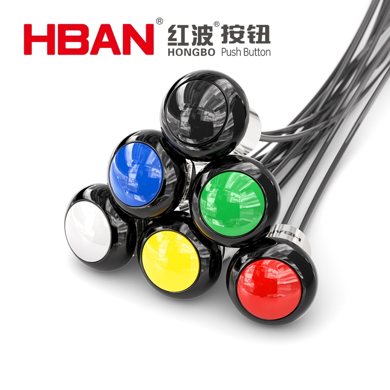 boutons-poussoirs en plastique 12 mm ip68 3A 250V à tête bombée à bouton-poussoir momentané avec fils pour l’équipement robot à poignée